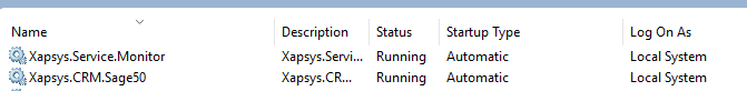 We will also need to change the user for the service to an account that Sage can login with. Go Run > Services.msc > find the Service called Xapsys.CRM.Sage200 right click properties